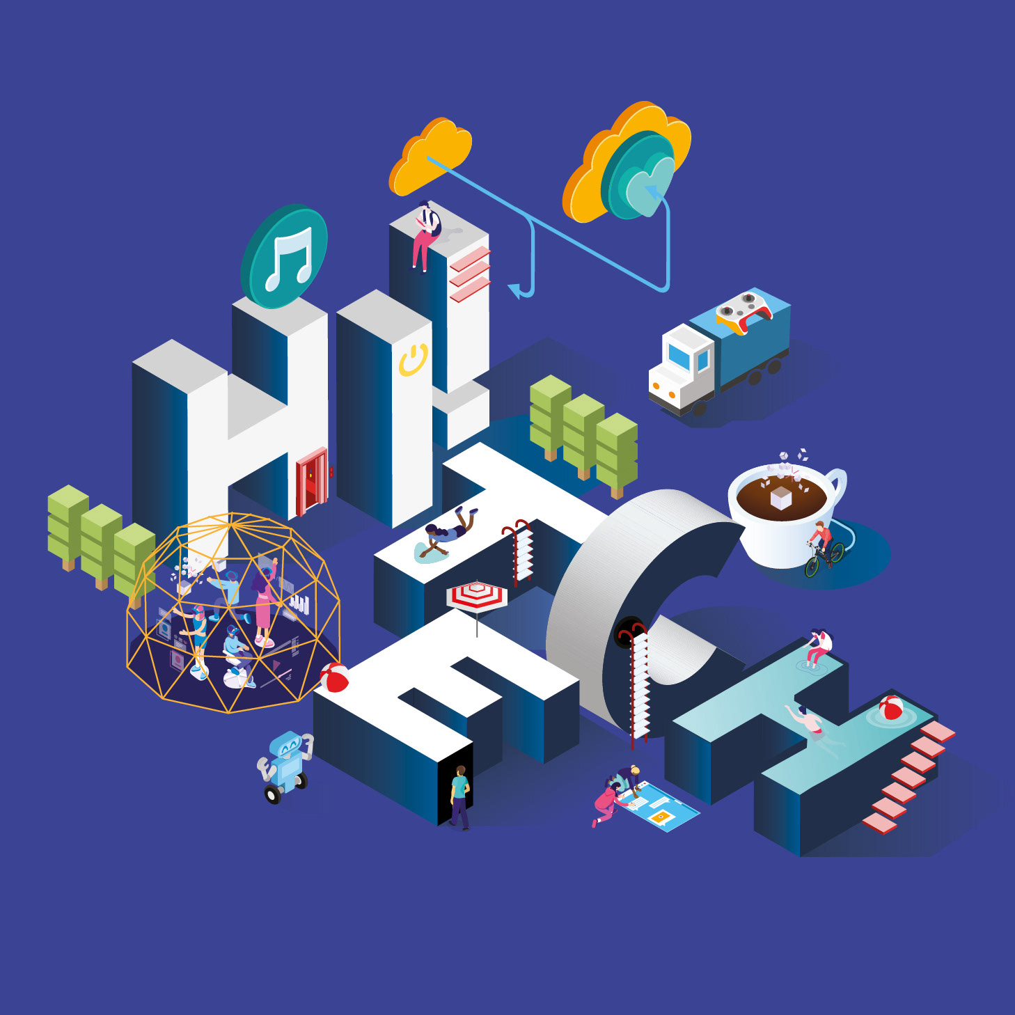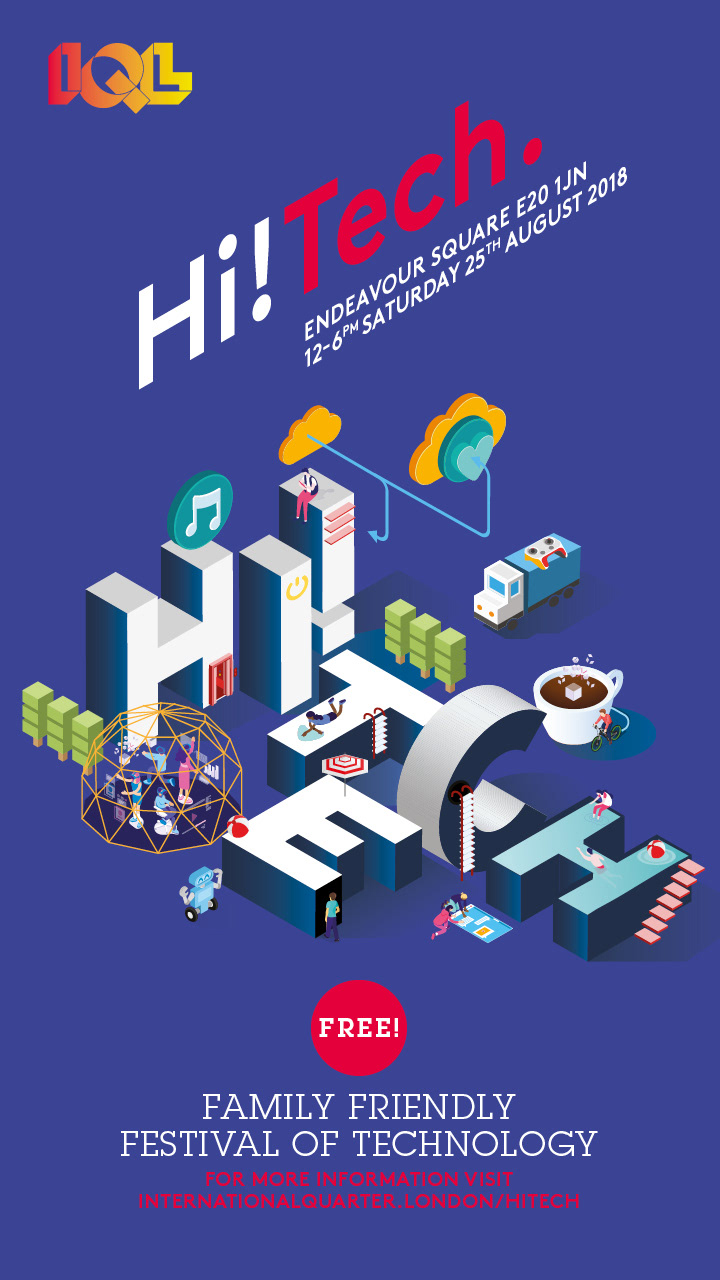 Design, illustration, animation for Hi!Tech, a one-day family friendly festival of technology held at Westfield Stratford. Included augmented reality treasure hunt. Project by ProduceUK